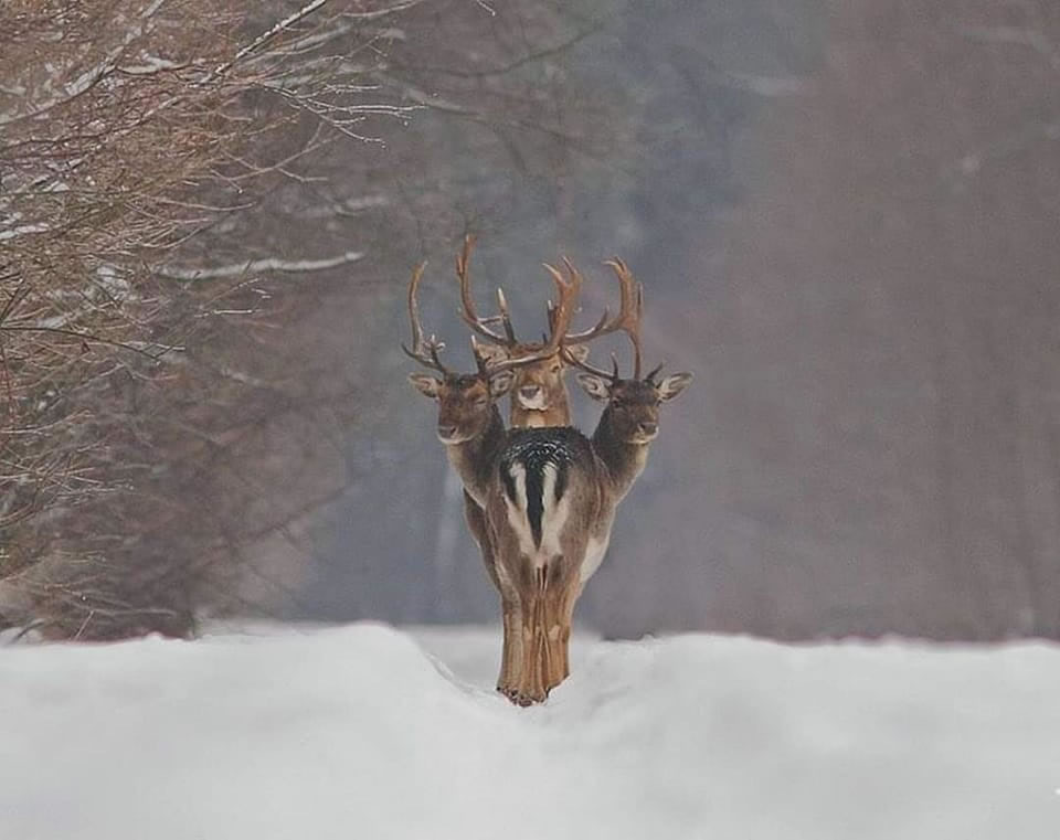 На первый взгляд фотография литовского мастера дикой природы Ренатаса Якайтиса кажется кадром из фэнтези: изящное тело оленя в снежном лесу венчают... три головы, одновременно повернутые к зрителю. Этот сюрреалистичный образ, балансирующий на грани реальности и мифа, стал визитной карточкой фотографа и ярчайшим примером того, как природа создает свои собственные иллюзии. Не менее удивительных фотографий дикой природы на протяжении своей карьеры Ренатас создал немало.