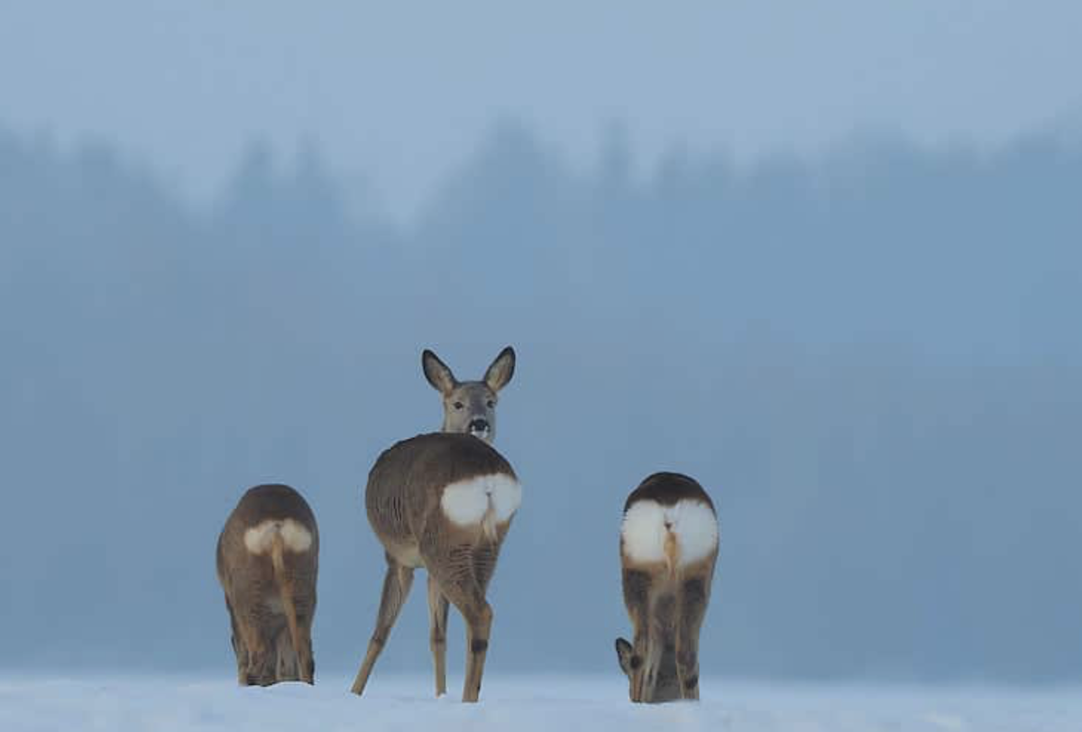 «Мне повезло, что они все сразу посмотрели в камеру, прежде чем исчезнуть, они все убежали, когда увидели меня! Должно быть, они стеснялись камеры». Ирония заключалась в том, что сам фотограф в момент съемки не осознал масштаба удачи. Магия кадра открылась ему лишь позже, при просмотре отснятого материала. «Когда я делал снимок, я даже не заметил этого, только когда просматривал изображения на камере, я осознал», — делился он. — «Я подумал, что это невероятно». Эта счастливая случайность — результат часов терпеливого ожидания идеального момента, пойманного буквально за доли секунды перед тем, как испуганные животные скрылись в зимнем лесу.