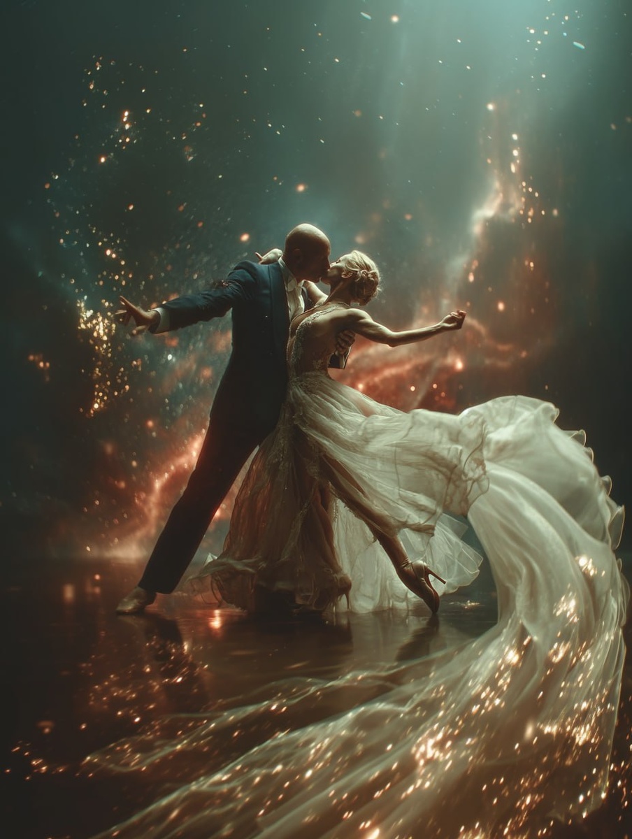 Ее герои не просто танцоры. Это персонажи эпохи, когда движение было театром, а жест — искусством. Осанка, костюмы, мягкий свет, винтажная фактура — все работает на ощущение настоящей сцены начала XX века.