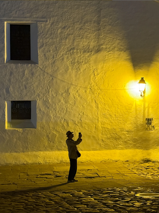 Это кинематографичный ночной снимок, сделанный в Колумбии, который притягивает своей загадочной атмосферой и игрой света. Одинокий силуэт на фоне уличного фонаря превращает ночную тишину в историю, похожий на кадр из кино. Что увидел в ночи этот мужчина?