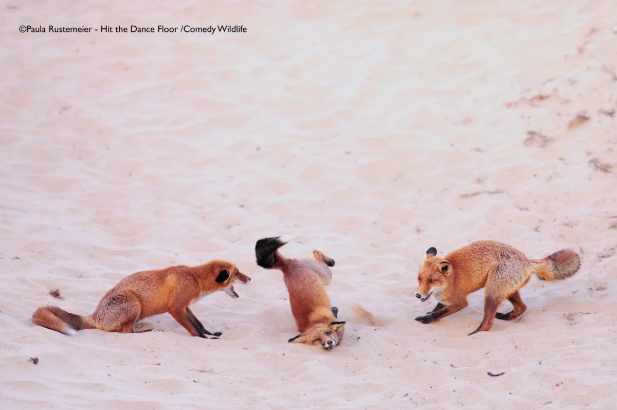 Паула просто проводила рядом много времени, и лисы привыкли к ее присутствию. И иногда даже подходили вплотную. Так она следил за этой семьёй несколько месяцев. Лисья нора была в песчаной низине, а по вечерам малыши собирались и играли — как на фото.
