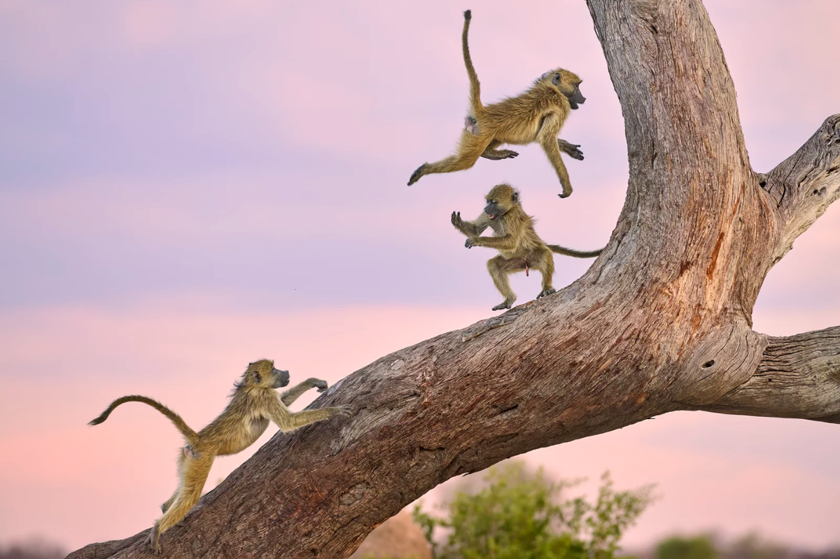«Мы были в медовом месяце в парке Хванге в Зимбабве. После первых дождей природа оживала. На одном дереве мы увидели целую банду бабуинов, которые играли, бегали кругами и пытались ловить друг друга. Это продолжалось минут пятнадцать — и выглядело как настоящий цирк».