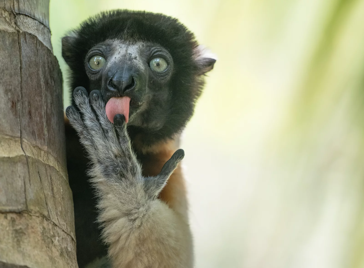 «Этот момент произошёл после того, как туристы покинули Нуси-Комба (Мадагаскар). Я остановилась, позволяя тишине опуститься вокруг, и обратила внимание на группу коронованных сифака (Propithecus deckenii). И вдруг он появился — уставился на меня широко раскрытыми, любопытными глазами, словно спрашивая, что я тут забыла... или, возможно, оценивая мой выбор одежды.
