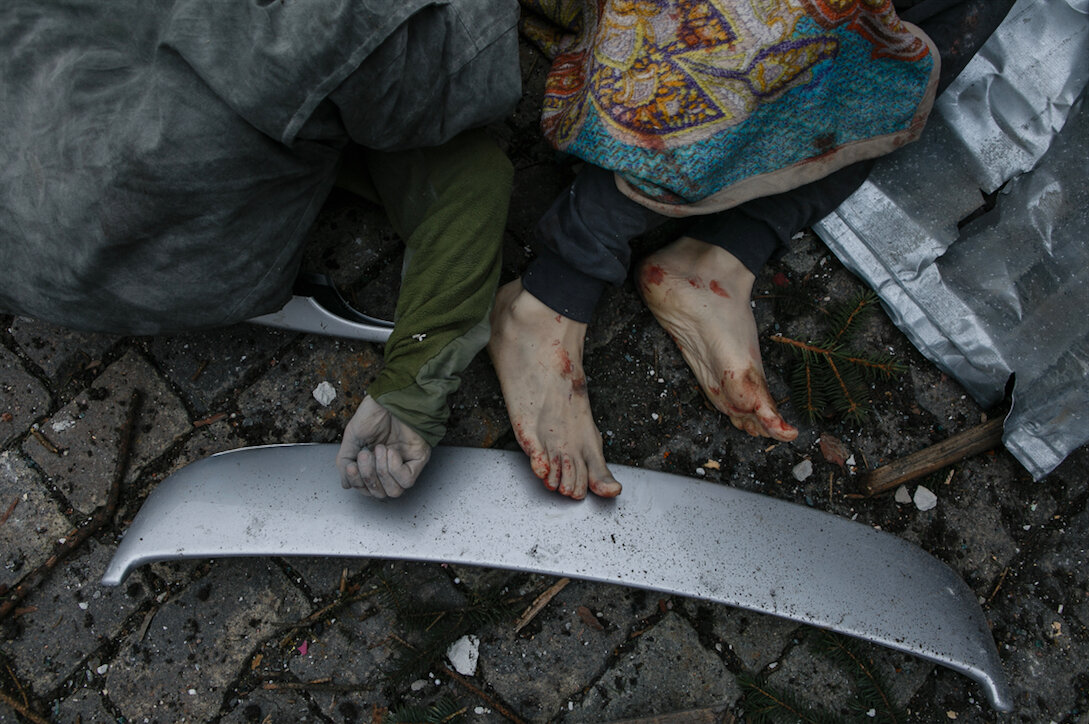 Сейчас Смутко работает в Киеве. Она продолжает записывать истории мирных жителей, которые страдают от бомбардировок и обстрелов, и вынуждены бежать в более безопасные районы Украины. Использование ею широкоугольного объектива приближает нас к событиям на фото.