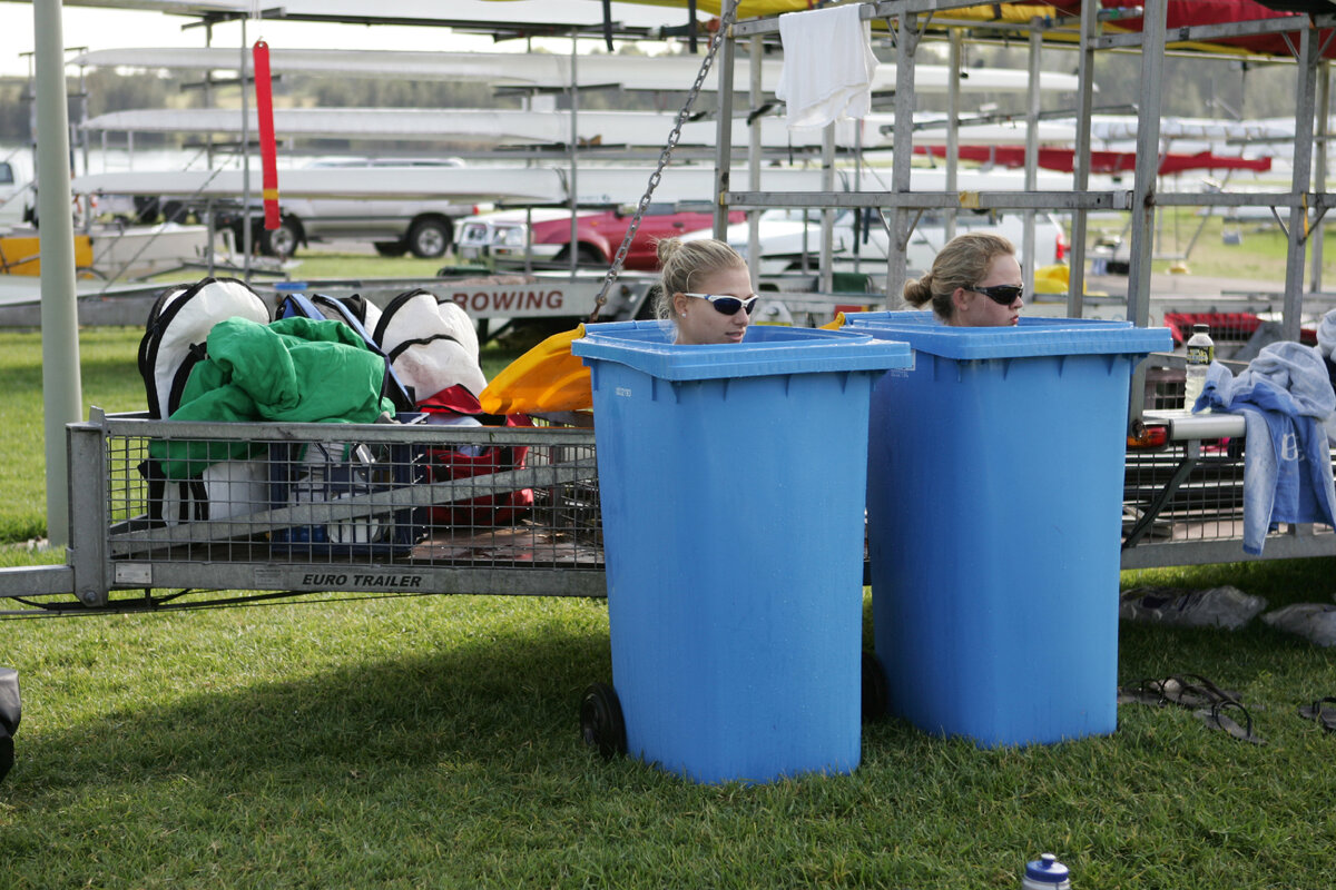 Спортсмены на чемпионате Австралии по академической гребле в Пенрите. Восстановление в корзинах со льдом. 2007 год.