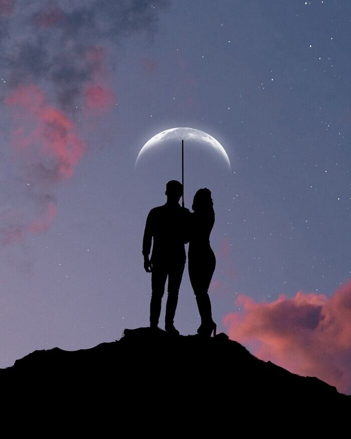 Спустя какое-то время Лан перешел на силуэты. Теперь ему нужно было просто добавить силуэт на фото, правильно поймать положение луны или облака и лишь немного проработать детали в Photoshop.