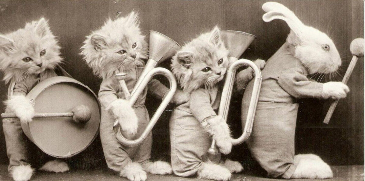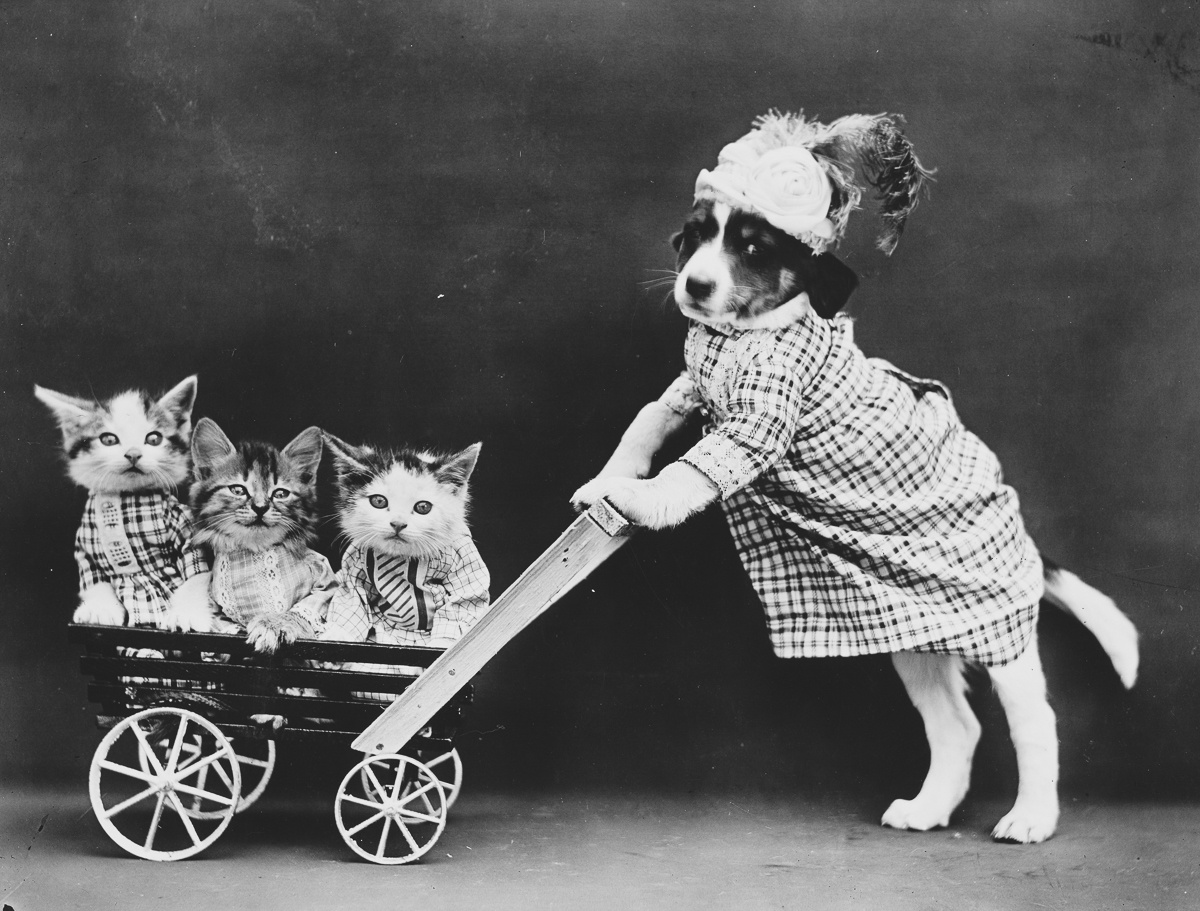 В начале XX века жил фотограф по имени Гарри Уиттер (Harry Whittier Frees). Он делал то, что сейчас назвали бы стопроцентным вирусным контентом: снимал котят, щенков и кроликов, одетых в человеческую одежду. Животные у него учились в школе, работали поварами, играли на музыкальных инструментах, ссорились, мирились и вели себя так, будто это маленькие люди.