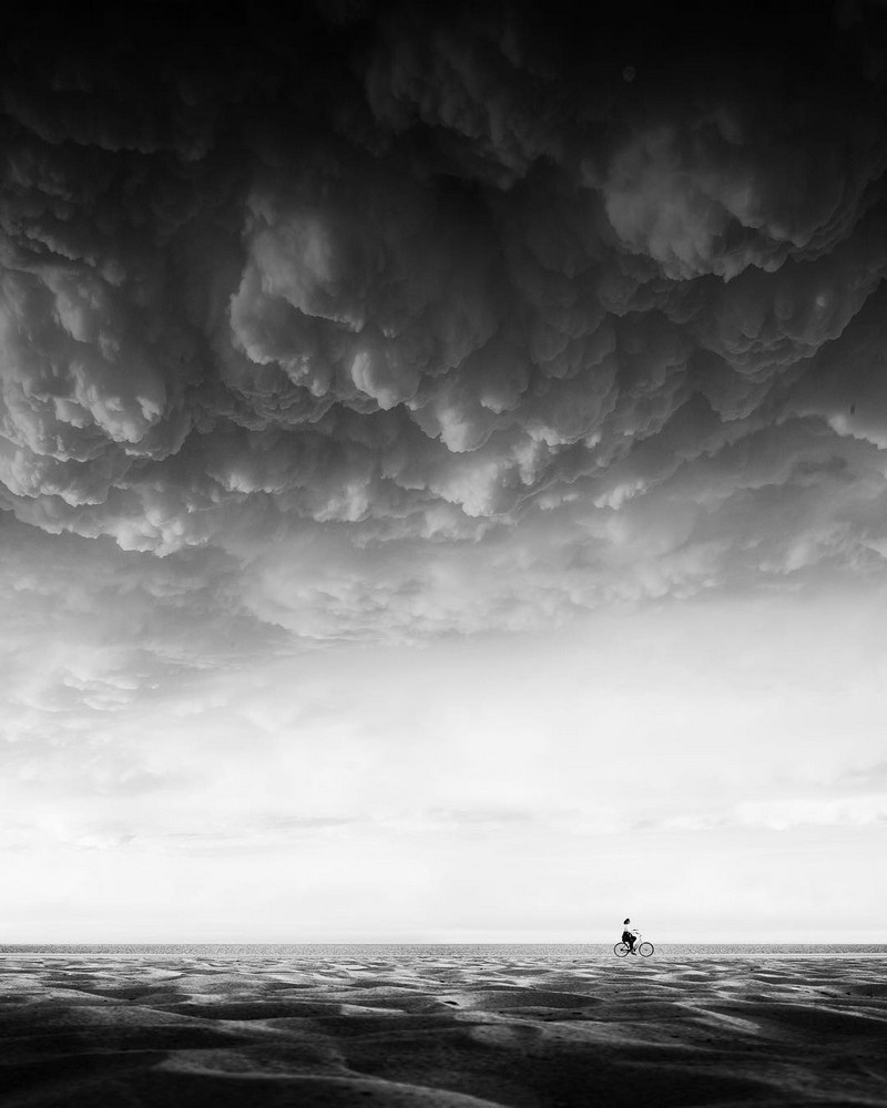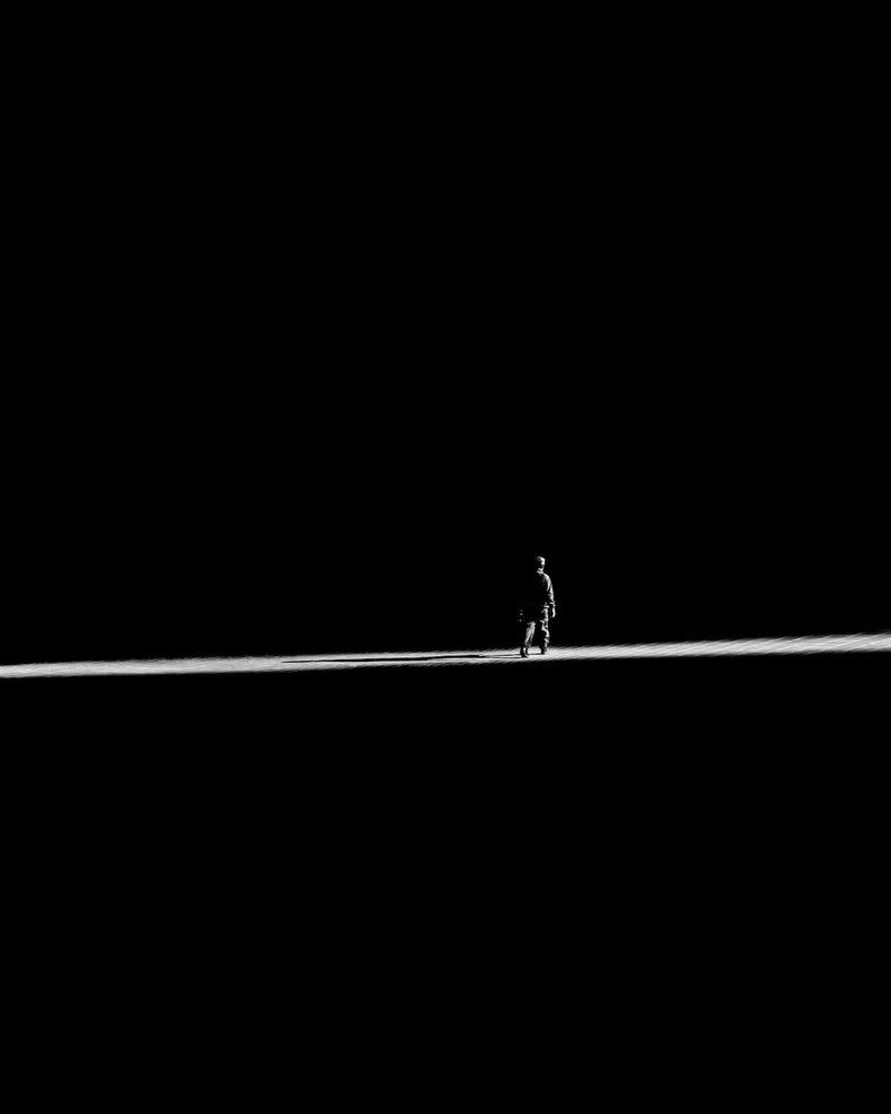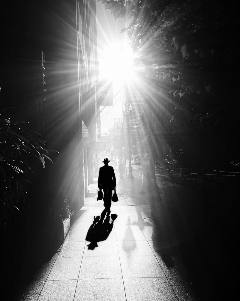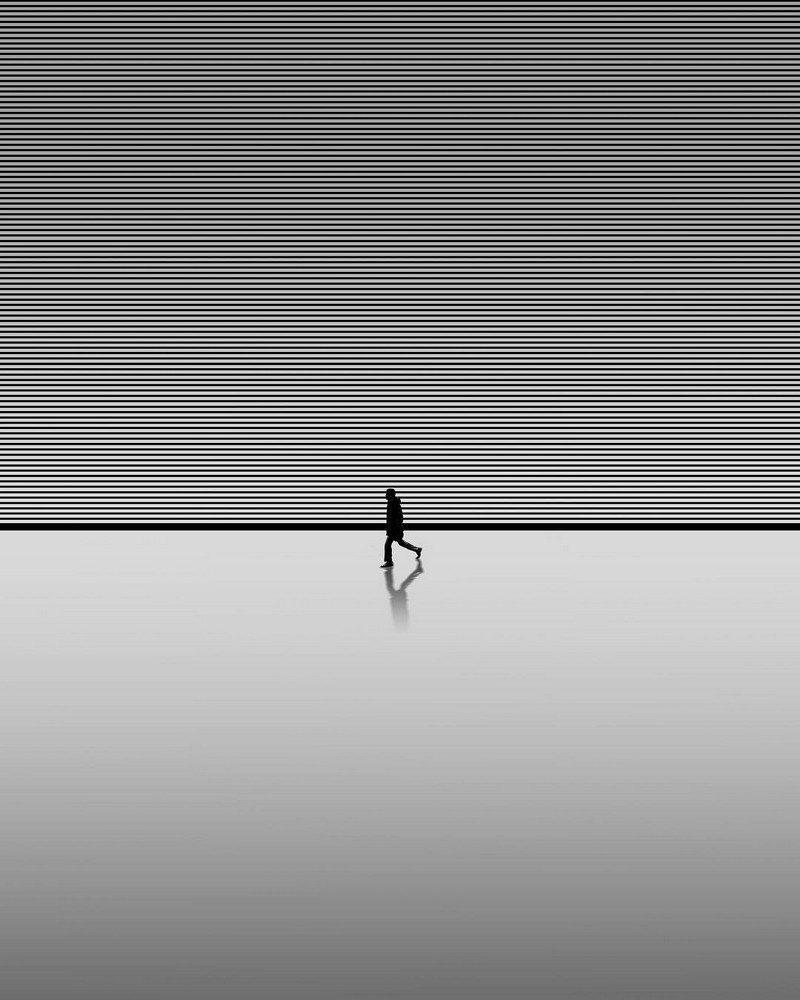 Он сумел сделать чёрно-белые, жёстко графичные и предельно минималистичные кадры по-настоящему вирусными в социальных сетях. Без цвета, без эффектных трюков, без визуального шума — только свет, тень и город, в котором человек растворяется в архитектуре.