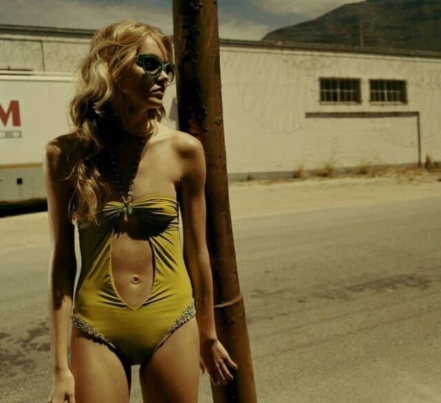 Даже когда речь идет о рекламе, Оливар сохраняет авторский почерк: холодная геометрия композиции, сильные линии, внимание к жесту. Он не «украшает» модель, он создает атмосферу.