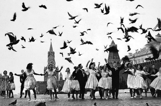 Его главными героями стали не партийные вожди, а влюбленные парочки, кидающиеся снежками дети, бабушки на скамейках и тому подобное. Его легендарный снимок «Голуби мира» стал символом целого поколения. В нем не было агрессии, только чистая энергия молодости и надежды.
