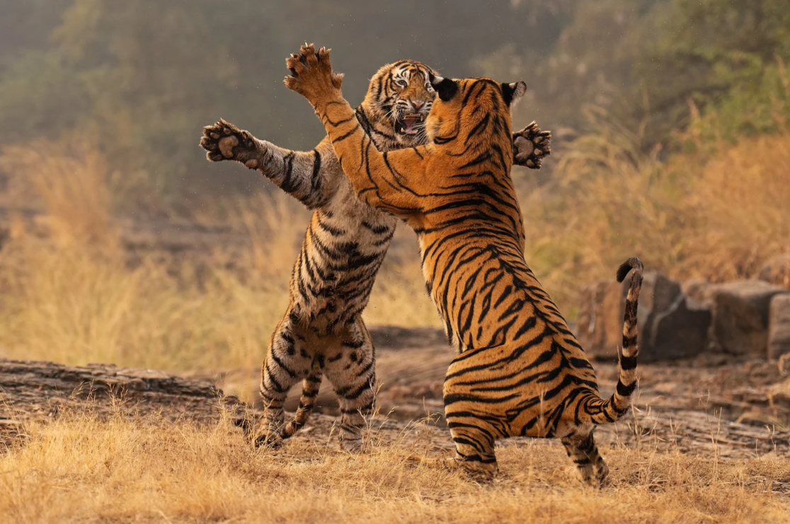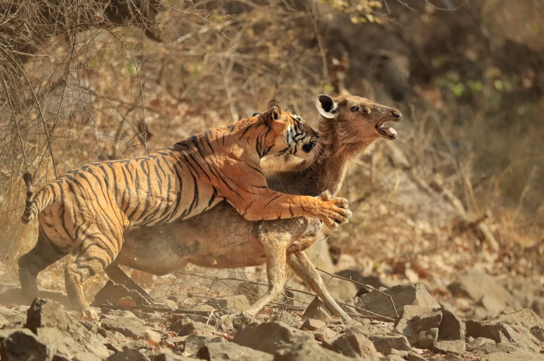 Его имя стало известно благодаря сериям с бенгальскими тиграми в Индии. Именно из-за ракурса и метода съемки. Вместо привычной дистанционной «охоты» с длиннофокусным объективом он установил камеры на уровне земли — там, где проходят тигры. Без приманок, без вмешательства, без человека рядом. Только техника и ожидание.