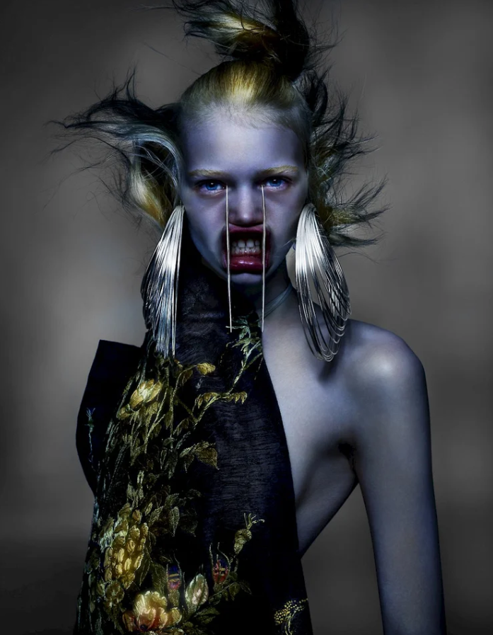 Эстетика шока и красоты Работы Найта часто балансируют на грани между прекрасным и отталкивающим. Он может превратить моделей в инопланетных существ с искаженными пропорциями.