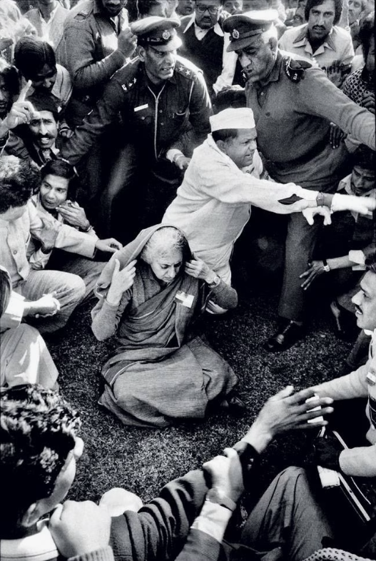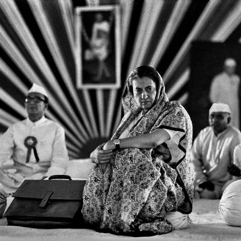 Индира Ганди сидит в знак протеста на своем газоне после поражения на выборах, 1977 год