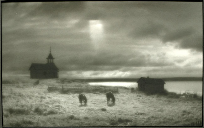 Его знаменитая серия «Русский Север» — это не просто архитектура Карелии и Архангельской области. Это туман, свет, дерево, храм в дымке. Серия «Чудотворец» — многолетние съемки крестного хода — не репортаж, а состояние пути, где важнее внутреннее движение, чем внешний сюжет.