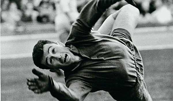 В советской спортивной фотографии того времени все было достаточно предсказуемо. Четкий кадр, понятный момент, зафиксированное действие — гол, прыжок, победа. Бородулин начинает делать иначе.