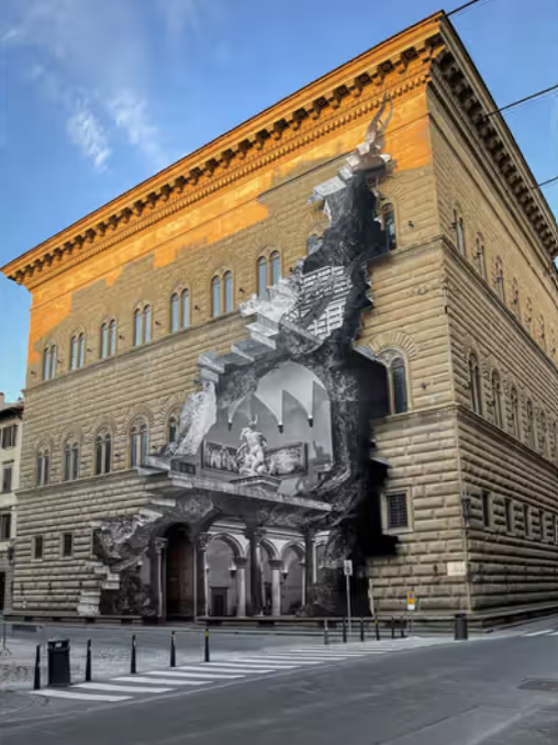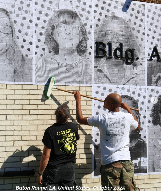 Эти изображения могут прожить месяц, могут исчезнуть через неделю — и в этом есть принципиальный смысл. JR не создает объект для коллекции. Он создает момент присутствия.