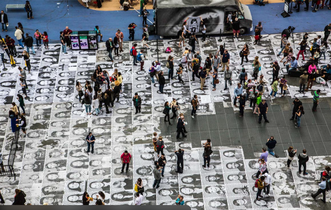Самый известный его проект — Inside Out — превратил эту идею в глобальное движение. Люди по всему миру фотографируются, получают отпечатки своих портретов и сами размещают их в городском пространстве. JR здесь не столько автор каждого изображения, сколько архитектор процесса — тот, кто запустил механизм.