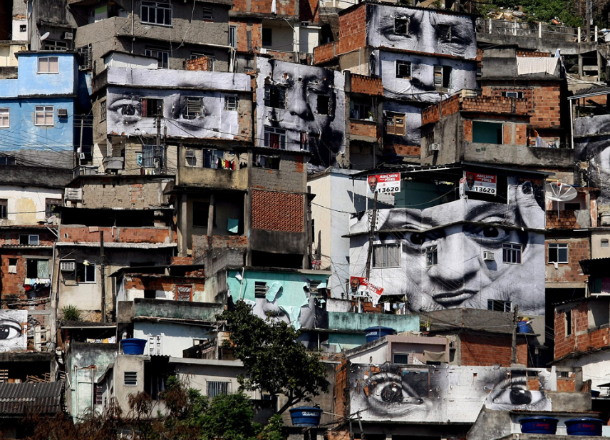 Фото на фасадах фавел в Рио-де-Жанейро