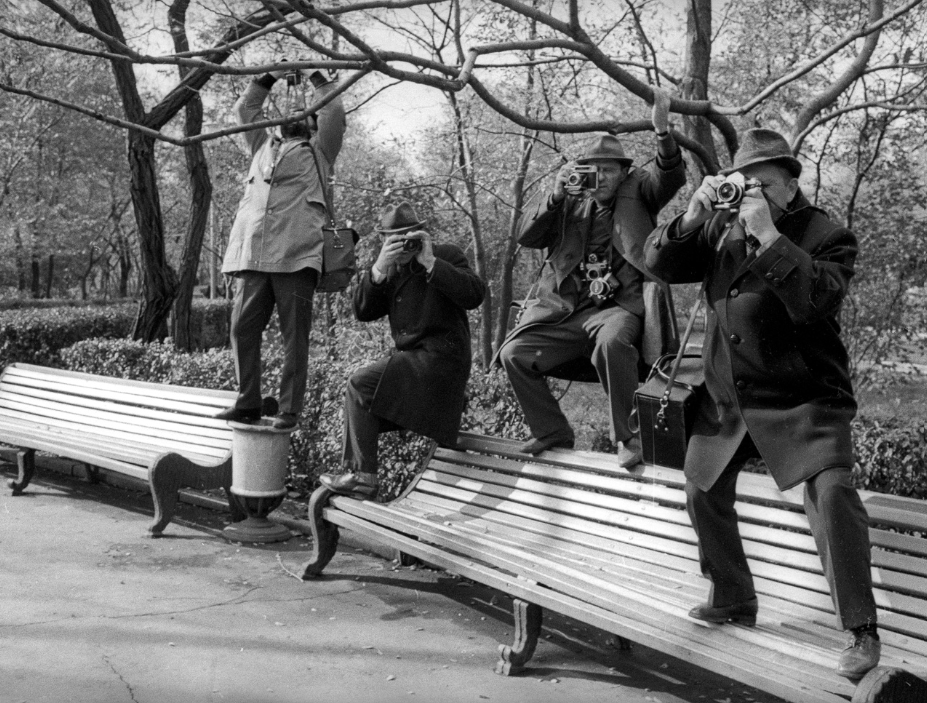 При этом Ахломов снимал и обычных людей: прохожих, детей, отдыхающих, рабочих. Его интересовала не сенсация, а момент — короткий, ускользающий, в котором вдруг проявляется время.