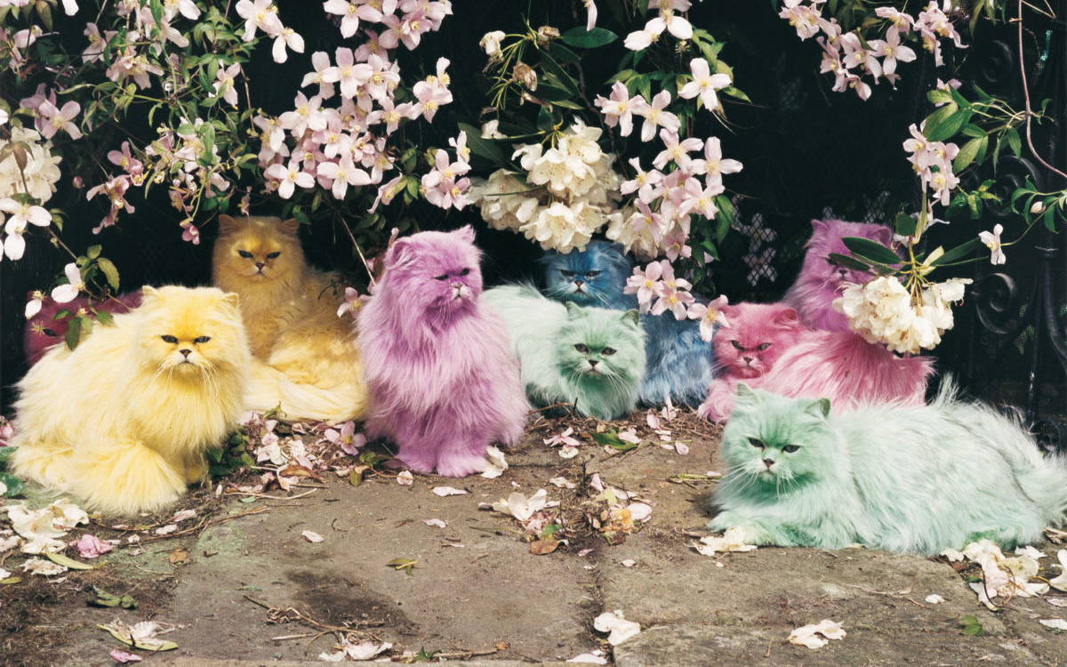 Покрасил 20 живых персидских кошек в пастельные цвета (специальной безопасной краской, конечно).