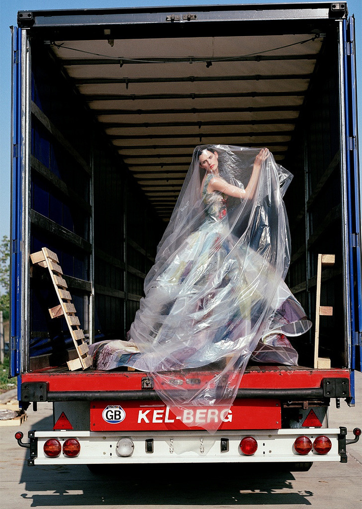Заставил моделей позировать внутри огромных стеклянных витрин, как будто они — музейные экспонаты.